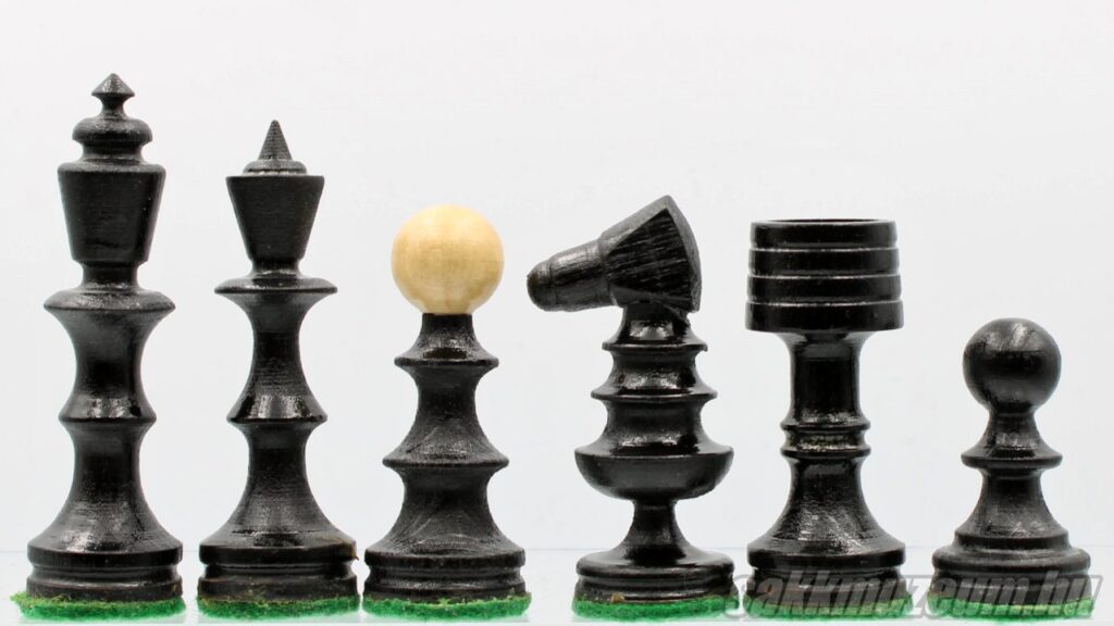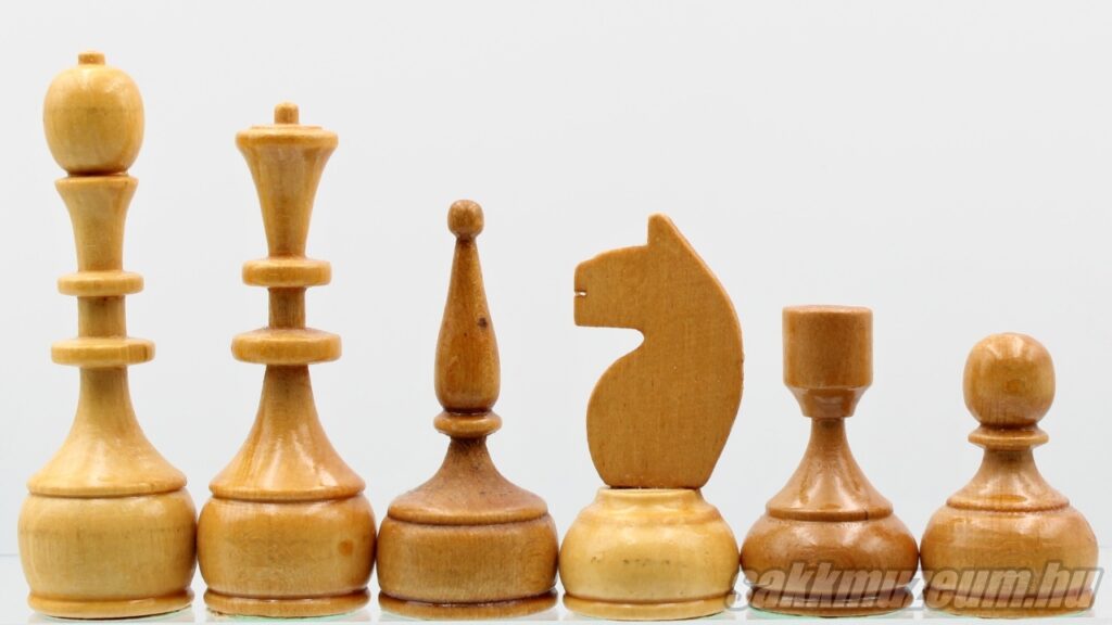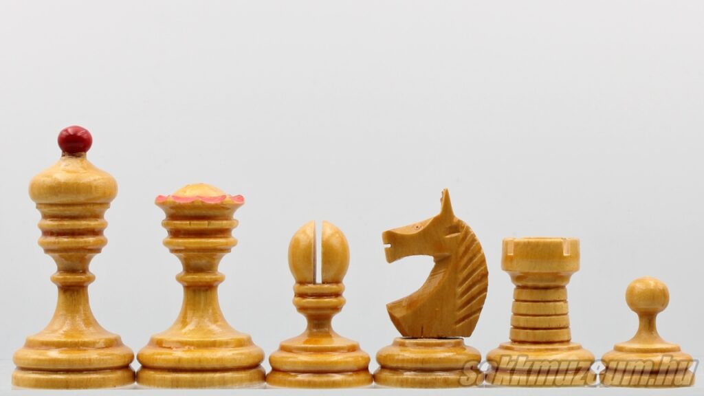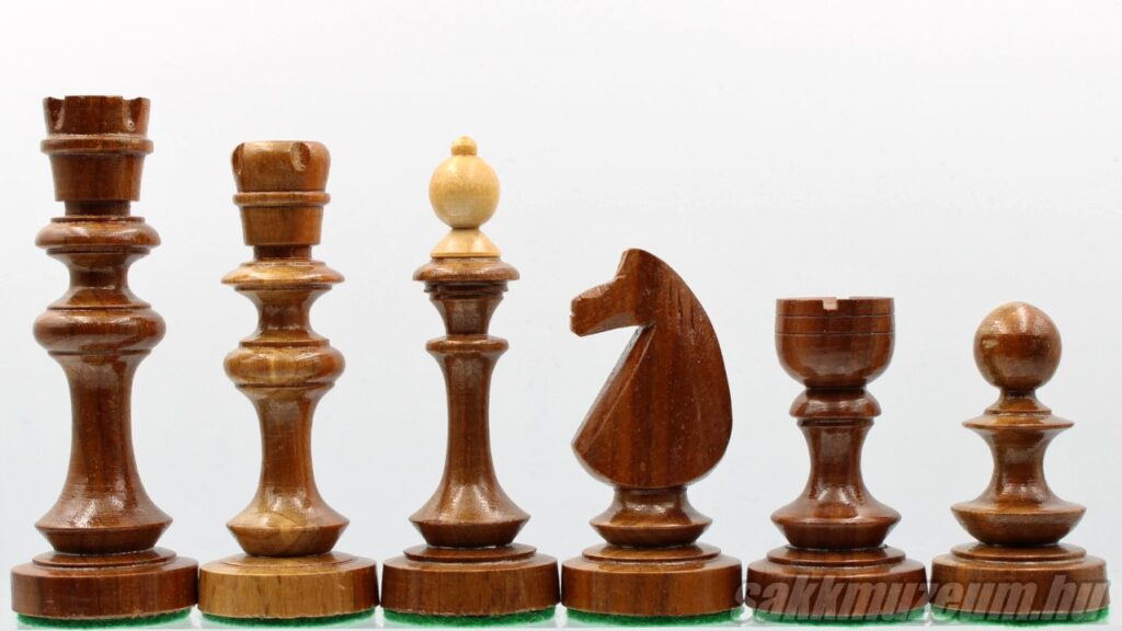 Zsámbékon ezerszámban gyártottak Magyar versenysakkot, Bécsi típusú sakkot és „Trial” sakkot, de ezek mellett próbálkoztak a magasabb színvonalú sakkokkal is, amelyeket exportra tervezték. Ilyen a zsámbéki Staunton készlet és a két alábbi sakk-készlet is. A világos figurákat juharfából, a sötétet diófából készítették.