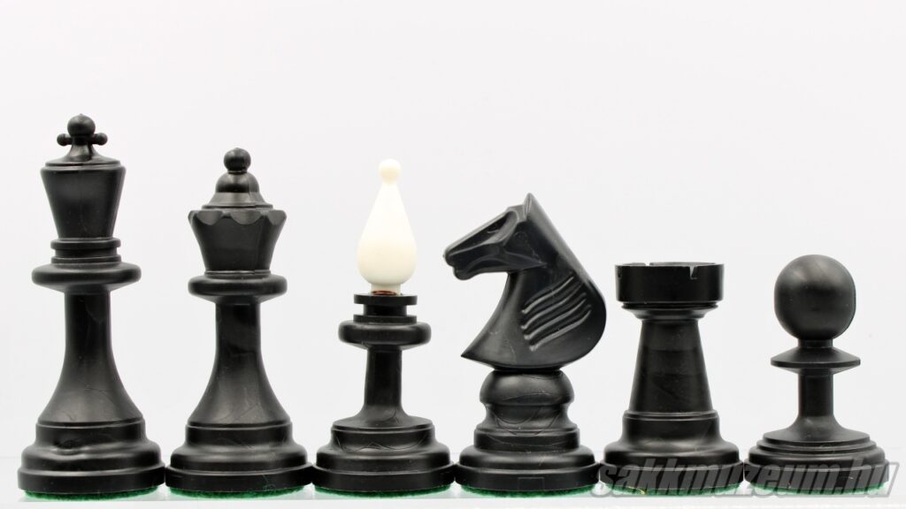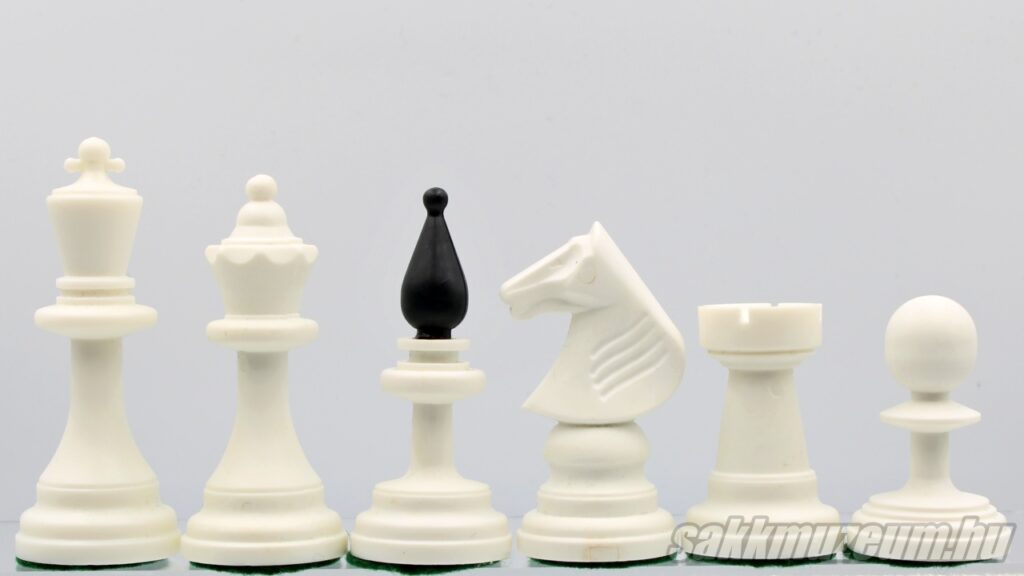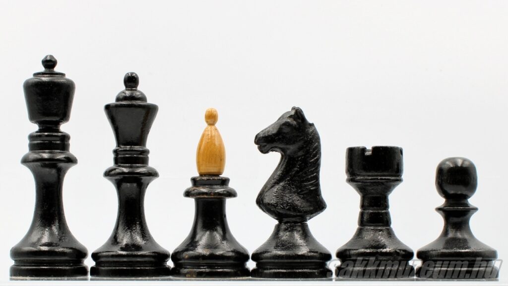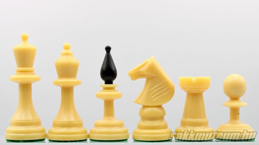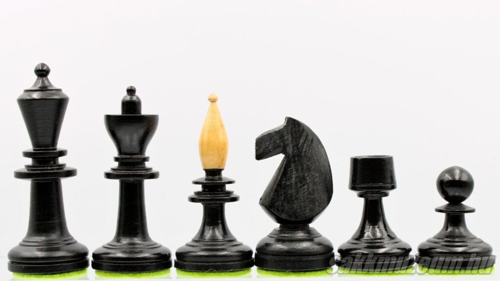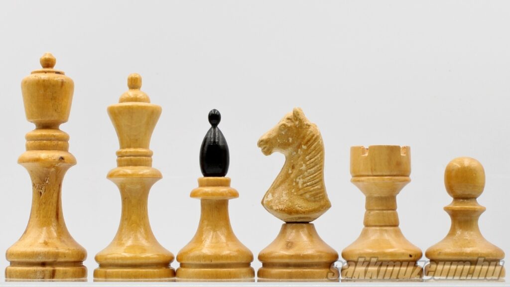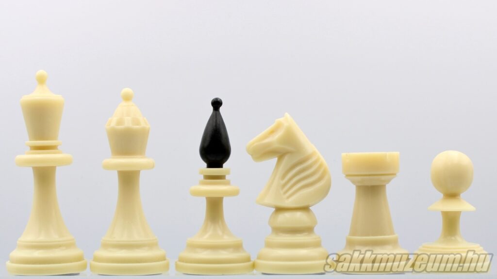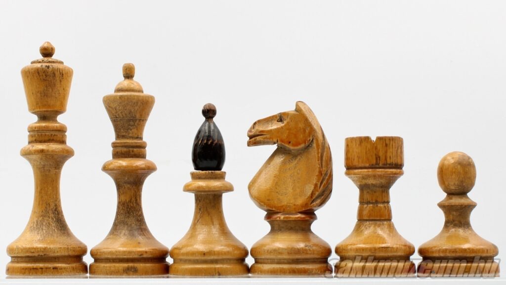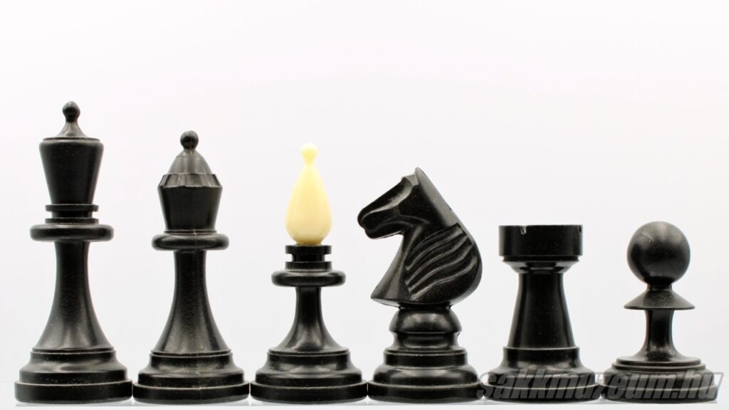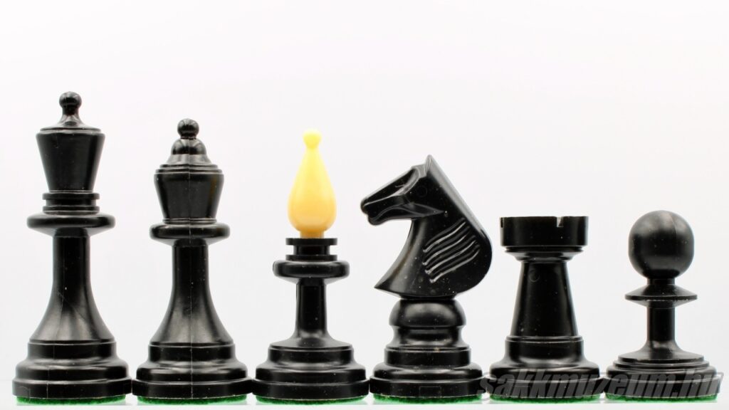 A következő készlet viszont abban más, hogy a huszár nem faragott, hanem öntött, emiatt ez a készlet még egyszerűbb és olcsóbb, ezen okból fogva jóval gyakoribb. A méretek megegyeznek az előző sakk-készlettel.